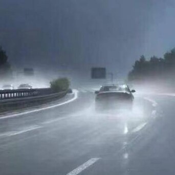 雨天开车跑高速要格外集中注意力,时不时轻点刹车,除去刹车盘上的水膜,保证刹车性能。